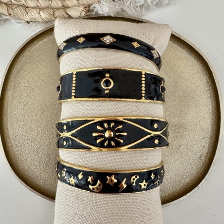 Joncs en acier doré et émaillé de noir