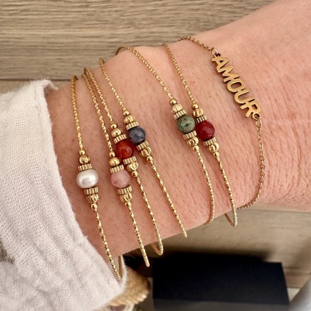 Jonc fin an acier doré avec une pierre naturelle