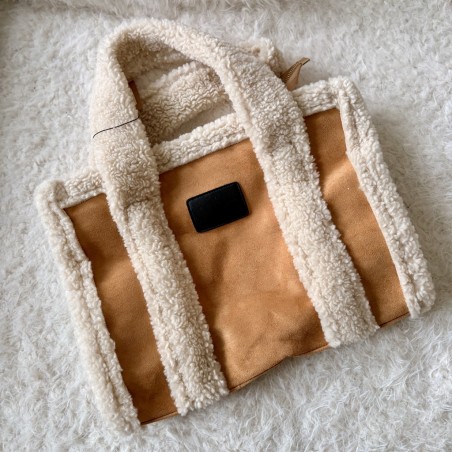 Juste magnifique ! ce cabas synthétique avec moumoute peut se porter à l'épaule et en bandoulière